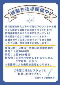 歯科治療後、もしくは3歳以下のわんちゃんが対象となります。